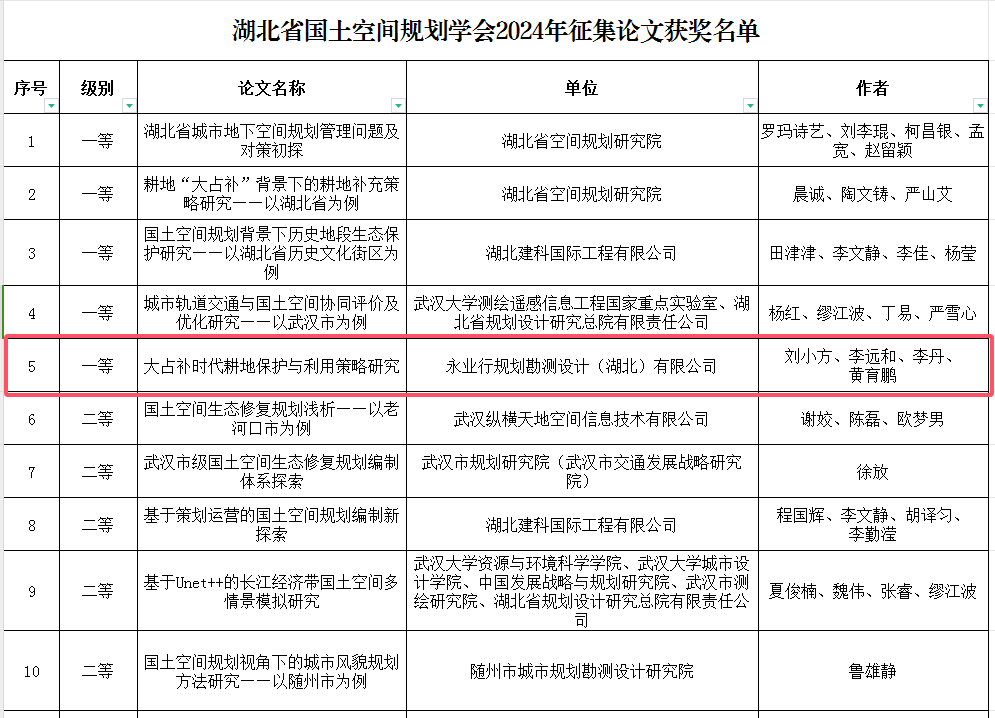 永业行荣获省国土空间规划学会2024年论文征集一等奖、三等奖